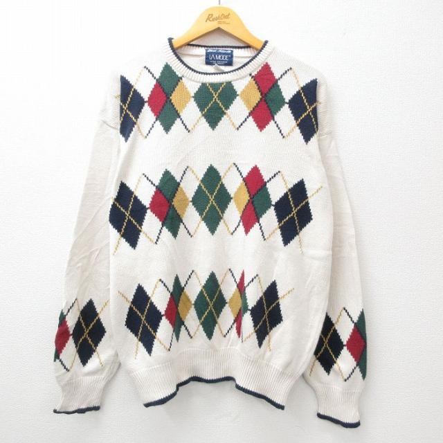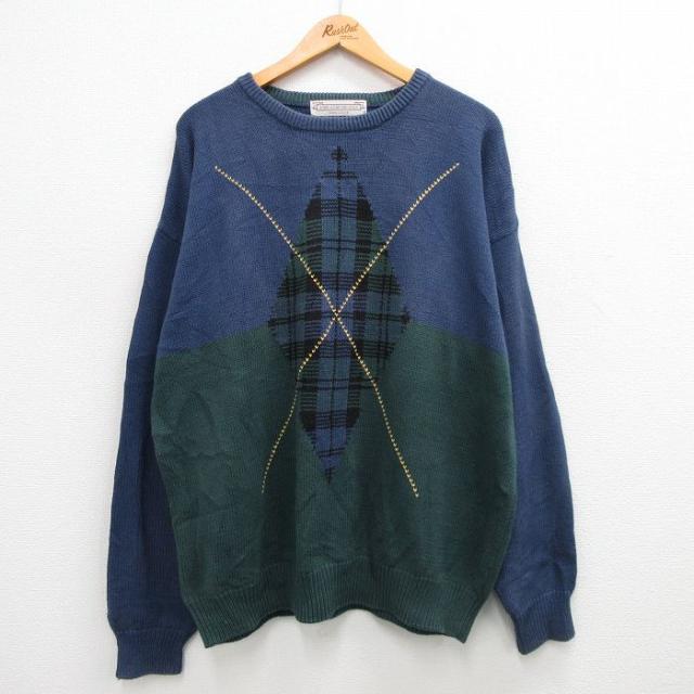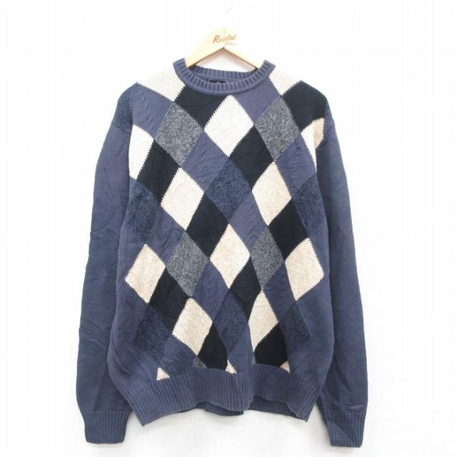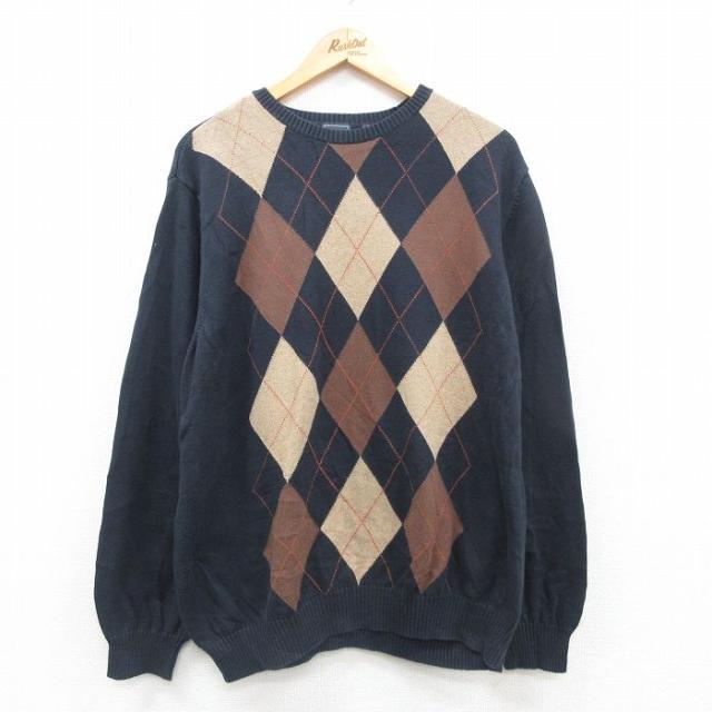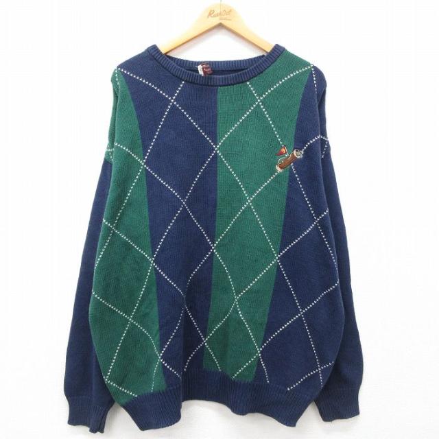 【商品名】 XL★古着 長袖 セーター メンズ 00年代 00s ゴルフ 刺繍 アーガイル 大きいサイズ コットン クルーネック 紺他
