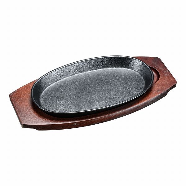 アサヒ ステーキ皿 小判 A-101(PAS07) 旭 asahi 鉄板皿 鉄板 ステーキ ハンバーグ 木台付き 木台 IH IH対応