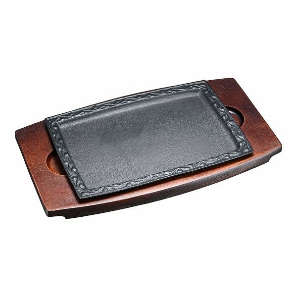 アサヒ ステーキ皿 角唐草大 A-113(PAS06) 旭 asahi 鉄板皿 鉄板 ステーキ ハンバーグ 木台付き 木台 IH IH対応