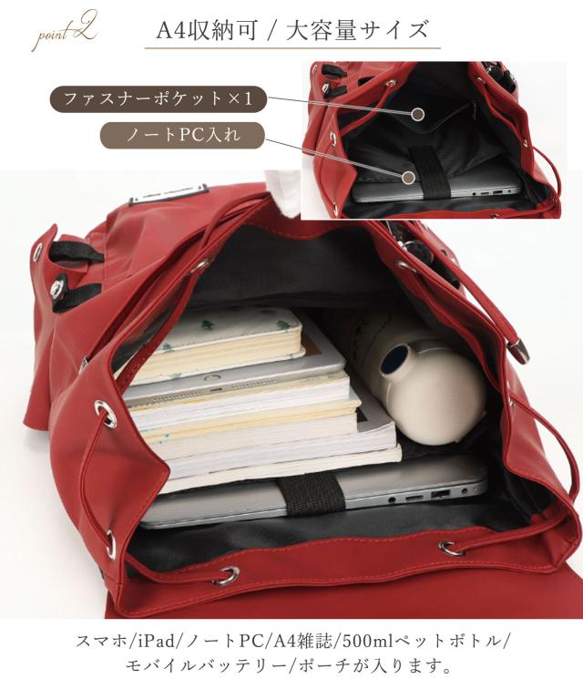 メイン口:巾着式&フラップ留め