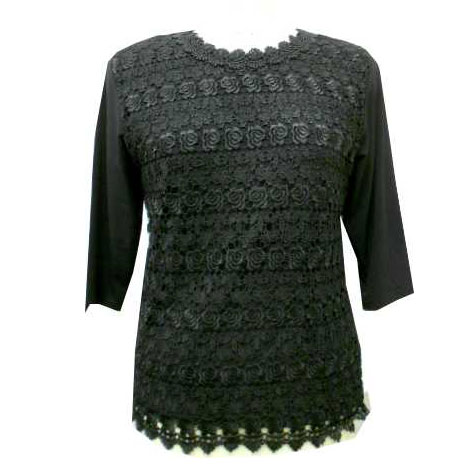 フォーマル トップス カットソー Tシャツ 丸首 レディース 前身レース七分袖Tシャツ 全2色 婦人服 ミセス シニア 女性 黒 白 シンプル レース 花柄 7分袖 クルーネック ファッション 50代 60代 70代 80代 母の日 お母さん 春夏秋冬 ura p25583