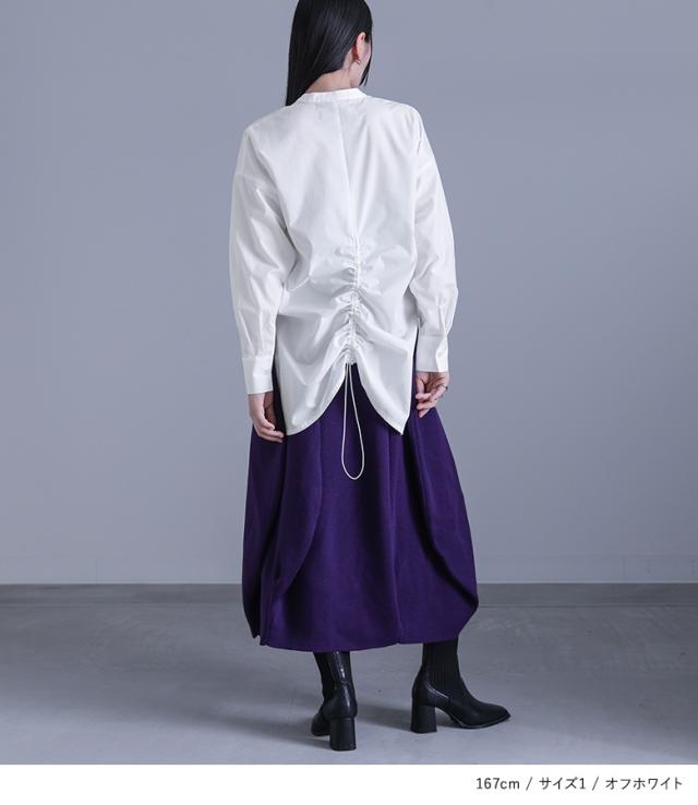 『ドロストデザインシャツ』※メール便可※【10】[シャツ 長袖 レディース トップス ブラウス ドロスト バンドカラー ロングシャツ スリット ボタンシャツ レイヤード 重ね着 ドロップショルダー]