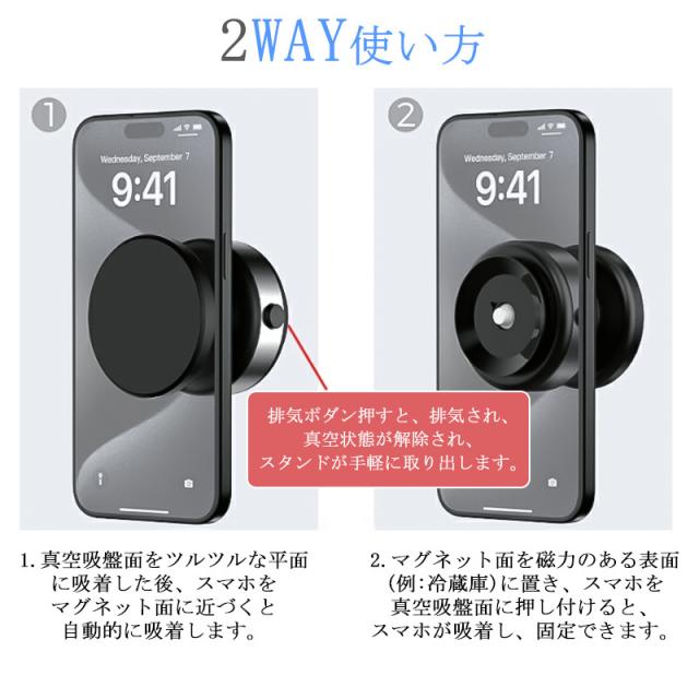 角度調節タイプ登場!スマホスタンド 車載ホルダー マグネット式 magsafe式 電動真空吸着式 超吸着力 スマホホルダー 安定性
