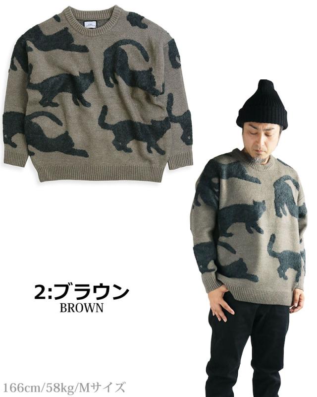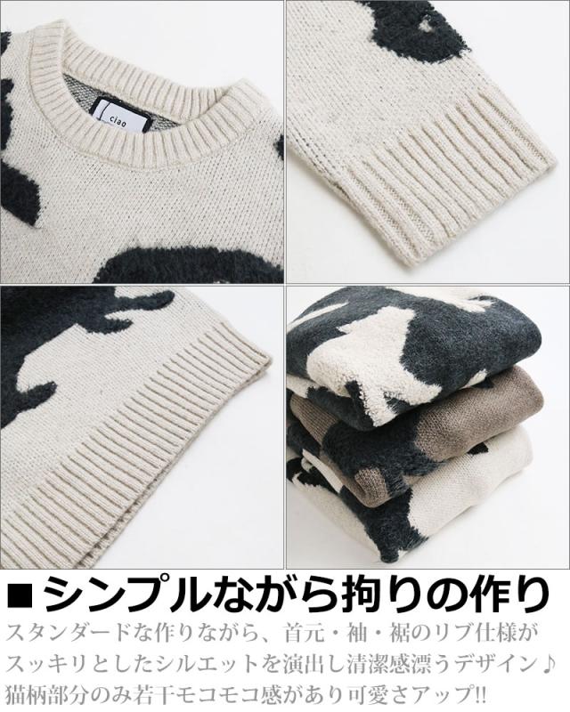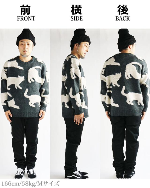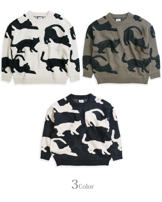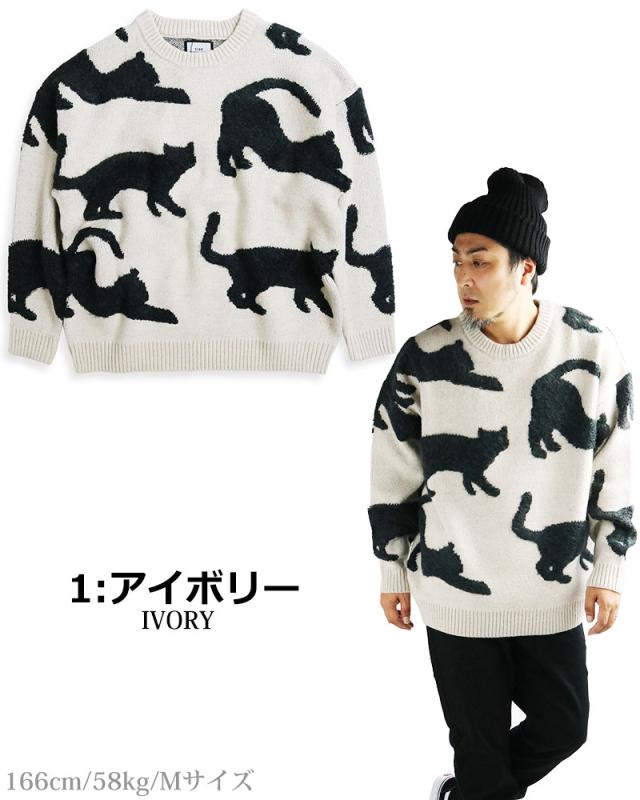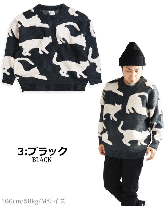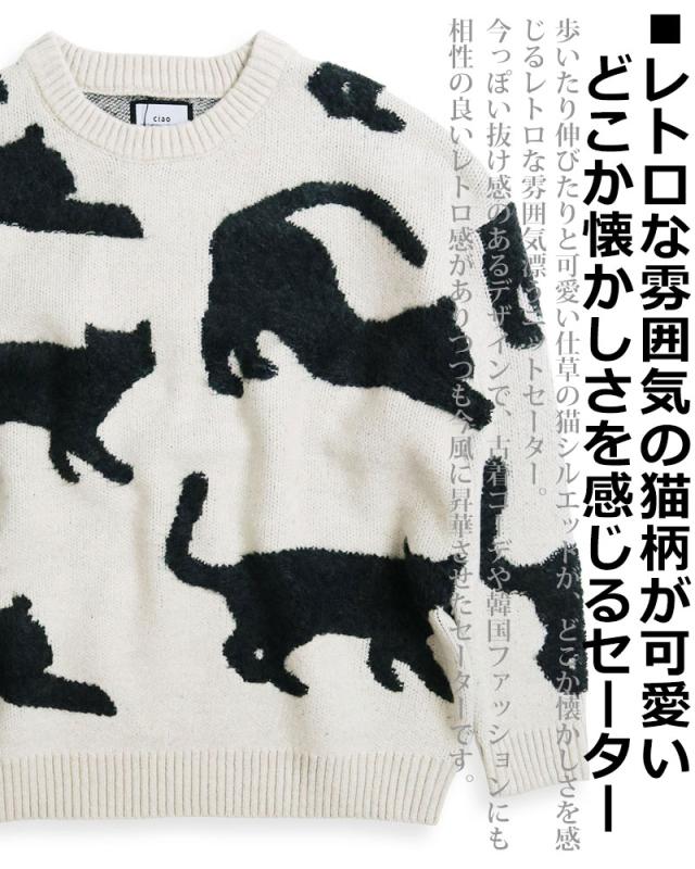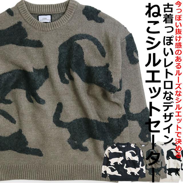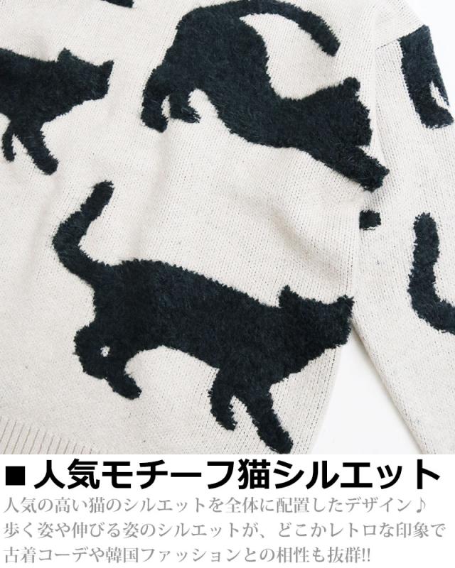 猫柄 シルエット ニットセーター ねこ柄 ネコ柄 アニマル柄 ルーズシルエット ワイドシルエット