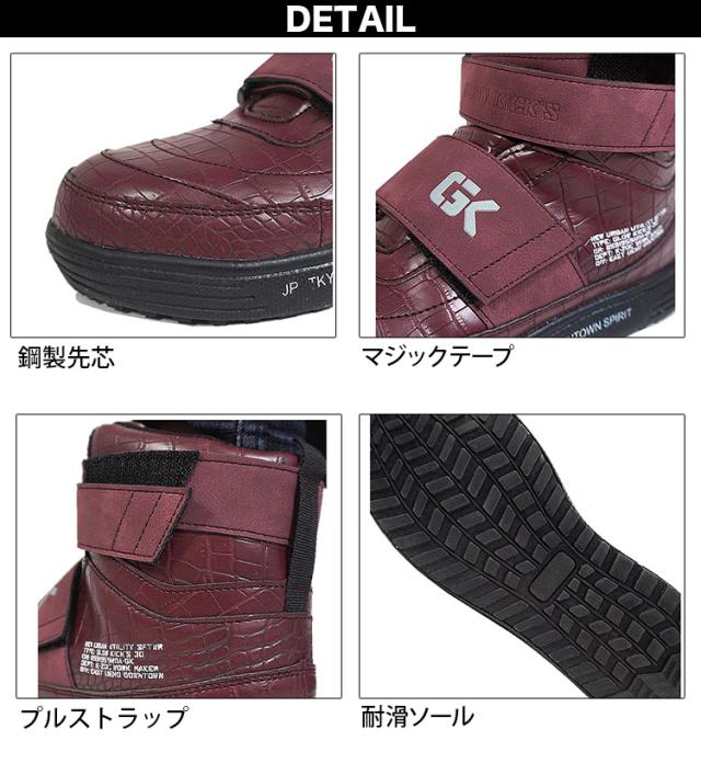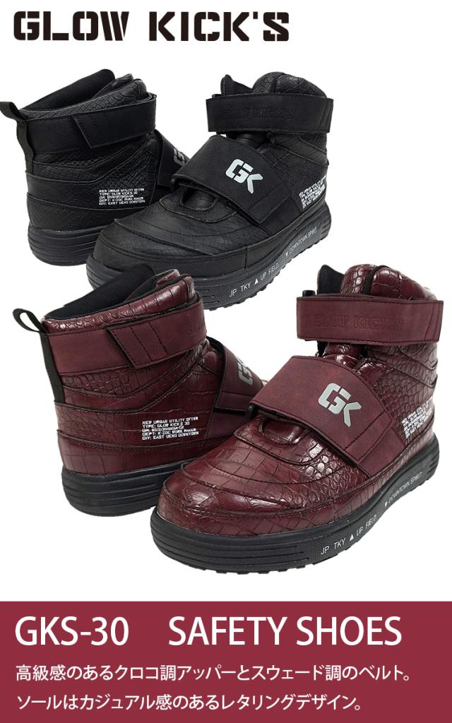 ケイゾック K-ZOC セーフティミッド(マジック)GKS-30 ハイカット 安全靴 3E 鋼製先芯 クロコ調 スウェード調 マジックテープ GKロゴ プルストラップ 軽量 耐滑 EVA+合成ゴム 作業服 作業着 GLOW KICK’S SAFETY SHOES