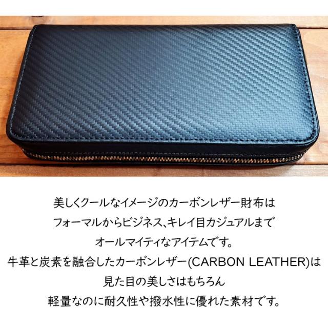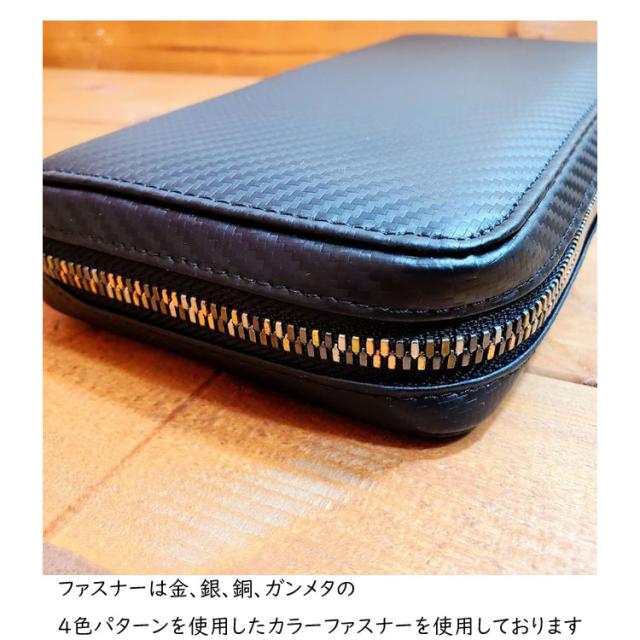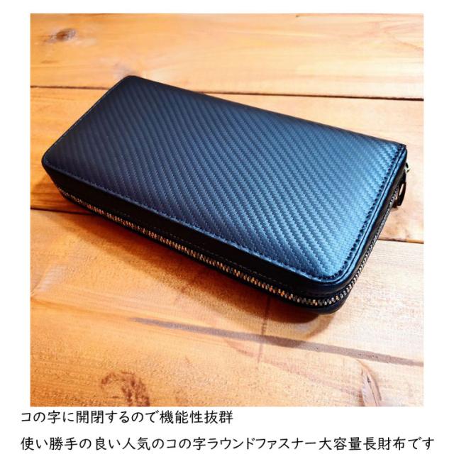 カーボンレザー カラーファスナー ラウンドファスナー 長財布 ロングウォレット 牛革 財布 本革 レザー ラウンドジップ 大容量 一粒万倍日 80588-sb