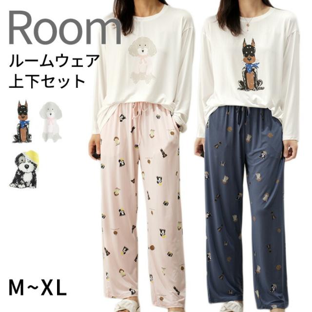 パジャマ 上下セット 犬柄 犬 ドッグ 薄手 夏 春 秋 長袖 ルームウェア セット レディース 部屋着 薄手 柔らかい お肌に優しい きれいめ 大人 カジュアル ゆったり 家族揃い プレゼント 愛犬 飼い主 ギフト ITEM026【水沐良品】