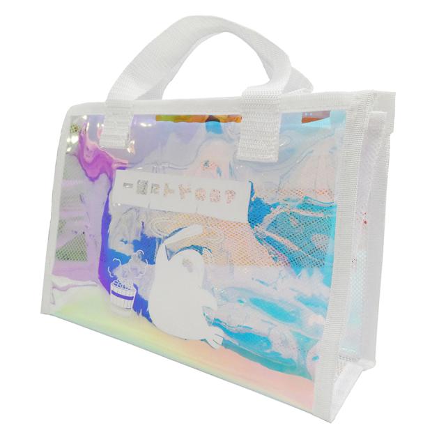 ・本来の用途以外では使用しないでください。・変形、変質の恐れがありますので火気に近づけたり、直射日光など高温になる場所での保管はおやめください。・取っ手やファスナー部分は無理な力で引っ張ると破損の原因となりますのでお取り扱いにはご注意ください。・使用後は水洗いし、直射日光に当てず陰干ししてください。カビの原因となりますので十分に乾かし、高温多湿の場所を避けて清潔な場所に保管してください。・洗濯機、乾燥機、アイロンはご使用いただけません。・汚れが気になる場合は、乾いた柔らかい布で拭き取ってください。・漂白剤、アルコール、シンナー、ベンジンなどの溶剤は使用しないでください。変色などの原因になります。・製品の特性上、サイズ、形状などに若干の個体差がある場合があります。ご了承ください。・素材特有の臭いがする場合があります。予めご了承ください。・素材の特性上、同素材同士や革製品、プリント製品と長時間接触させると貼り付き、色移りの原因となりますのでご注意ください。・プリント部分は時間の経過とともにはげる場合があります。ご了承ください。・包装時にシワが生じる場合がありますので予めご了承ください。・本品は食料品保存袋ではありません。・本品に防水機能はありません。・破損した場合はご使用をおやめください。