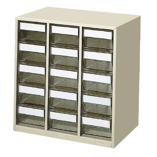 ●引出数/5段(15引き出し)●付属品/仕切板15枚●外寸法/幅361×奥行236×高さ378mm●引出内寸法/幅95×奥行209×高さ62mm●材質/本体:スチール(焼付塗装仕上げ)、引き出し:再生PS●色/ライトグレー