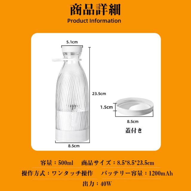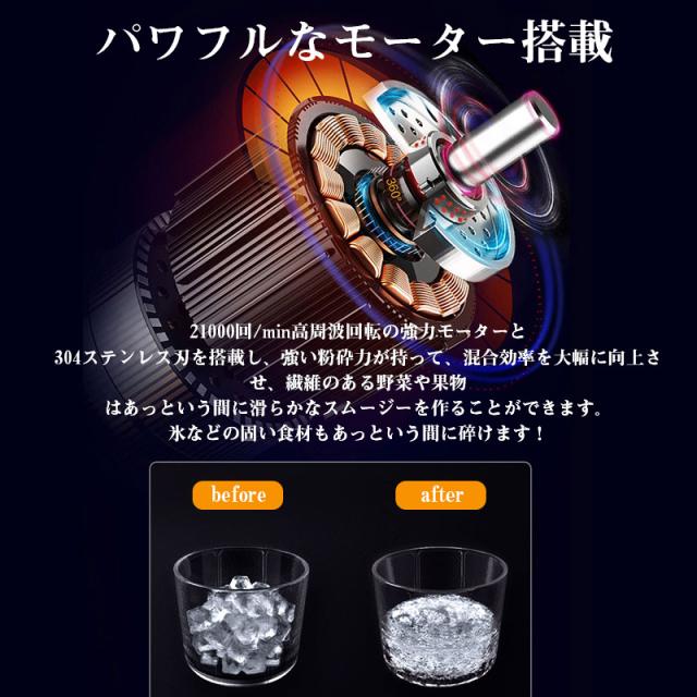 ジューサー ミキサー ハンディミキサー 丸洗い可 携帯ジューサー コードレス USB充電式 持ち運び便利 氷も砕ける スムージー 栄養補充 一台多役