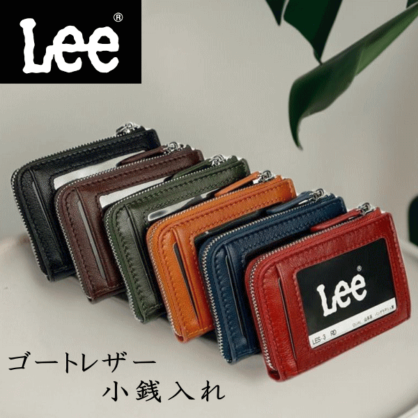 小銭入れ 財布 Lee ゴートレザー 山羊革 本革 メンズ コインケース コイン入れ パスケース LES-3 キャメル色 グリーン色 チョコ色 ブラック色 レッド色 ネイビー色