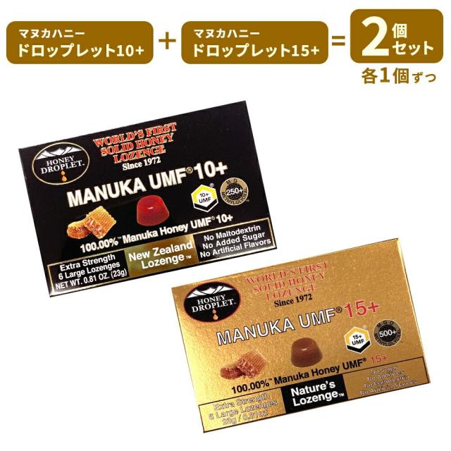 マヌカハニードロップ UMF 10+&15+ 各1個ずつのセットです。