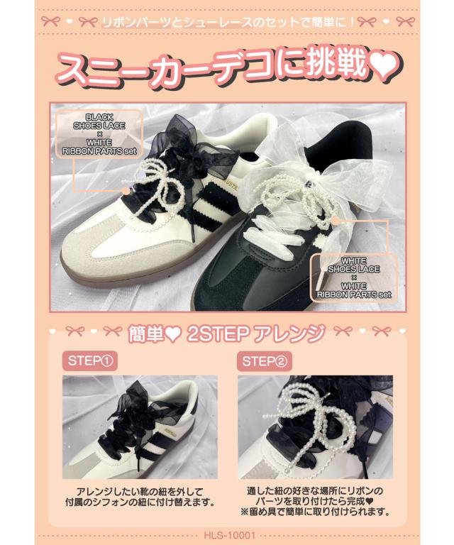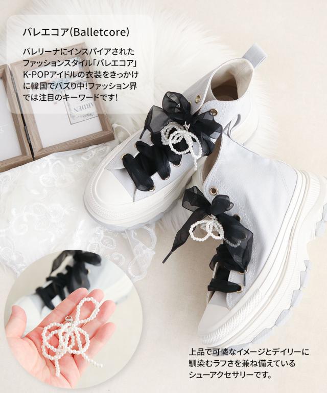 シューズアクセサリー スニーカーデコ シューピアス スニーカーアクセサリー シューチャーム パール リボン レース スニーカー おしゃれ カスタム 靴 靴ひも シューパーツ 黒 ブラック 白 ホワイト 中学生 高校生 大人 女性用 レディース 韓国 ファッション