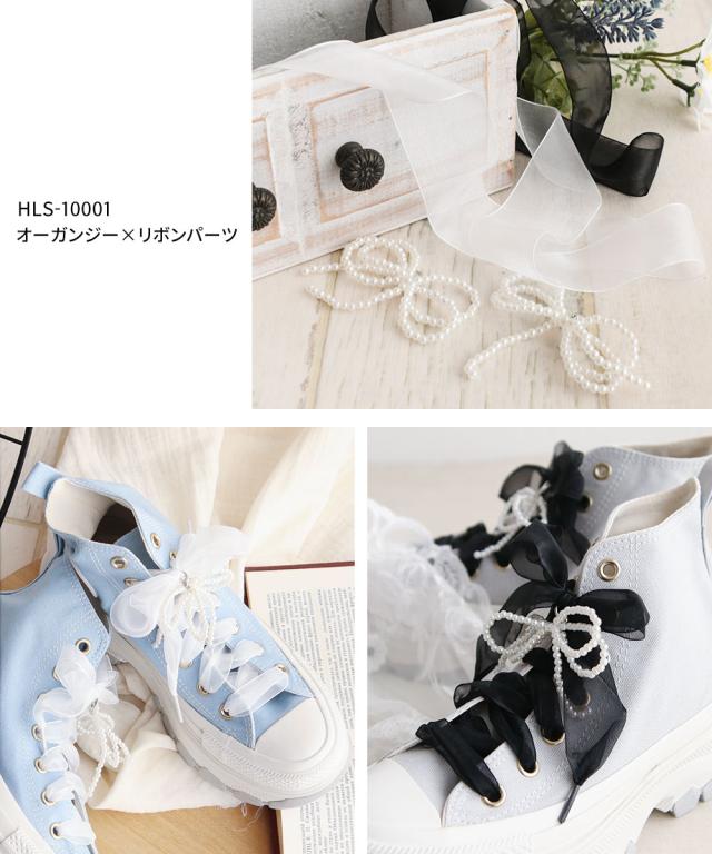 ■シューレースとミニパールリボンの組み合わせ