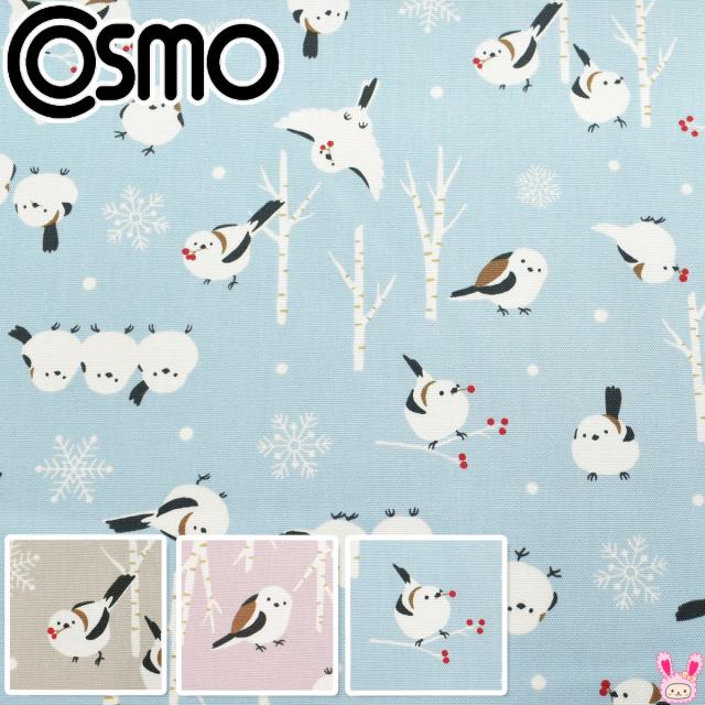 シマエナガと雪 オックス生地 AP51104-2 コスモ (50cm以上10cm単位切り売り)