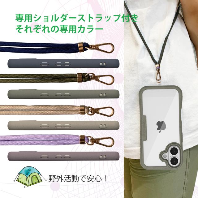 【14時までの注文で当日発送】 コンポスケース iPhone16 / iPhone16 Pro スマホショルダー スマホケース アイフォン ケース 着せ替え 肩掛け 首かけ 斜めがけ 背面 シール ショルダーストラップ エコ 4色 ベージュ モスグリーン グレー パープル