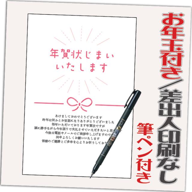 年賀状じまい お年玉付き 年賀はがき 12枚 文章印刷済み 終活年賀状 年賀状辞退 筆ペン付き 2026年 差出人なし(デザイン:J07) うま 馬 午年 10枚+2枚