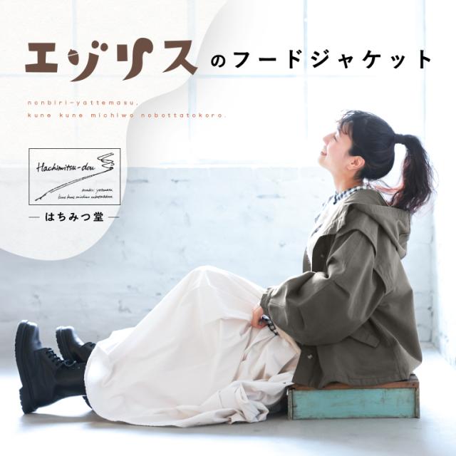 はちみつ堂 エゾリスのフードジャケット レディース ライトアウター 羽織り マウンテンパーカー 長袖 バルーンスリーブ コットン