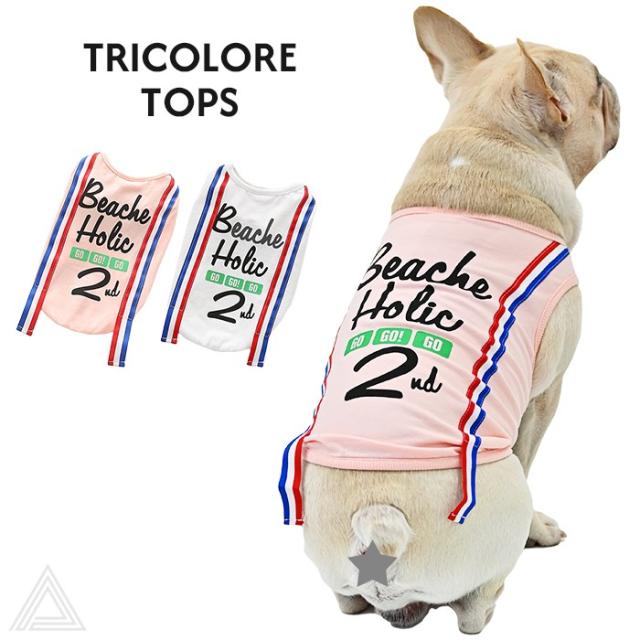 フレンチブルドッグ トリコロールトップス タンクトップ ノースリーブトップ 犬 犬服 夏 ペット服 ドッグ ペット用 わんこ用 フレブル