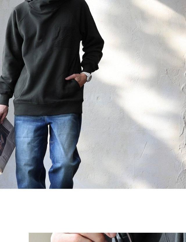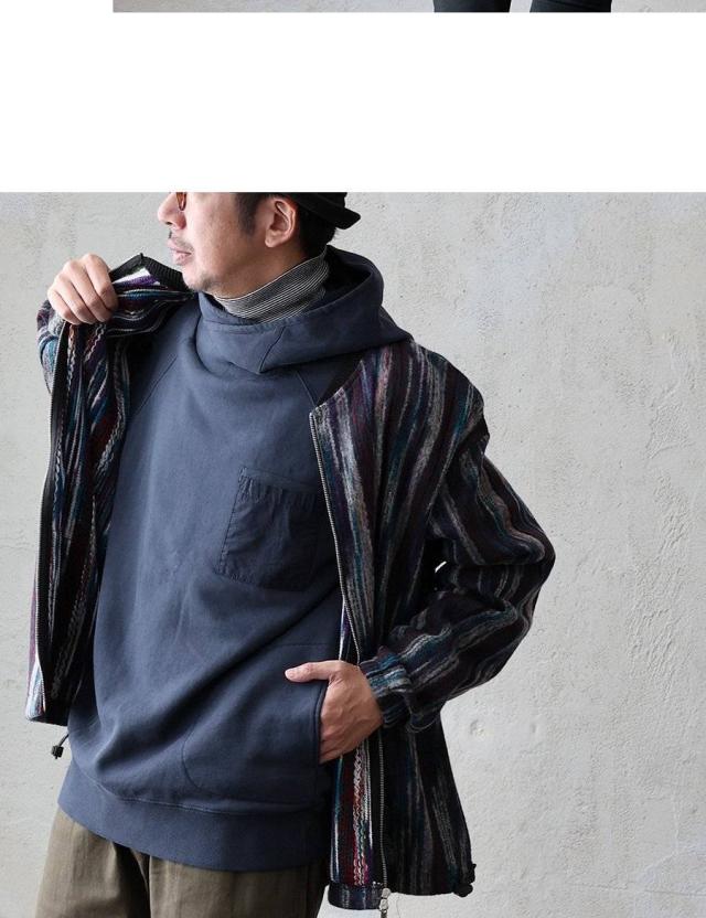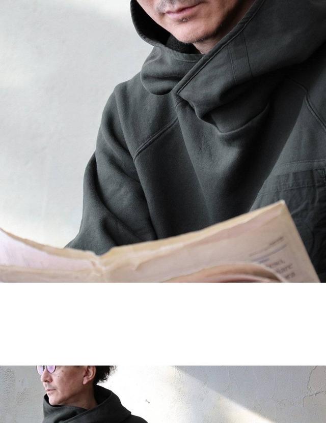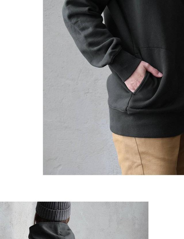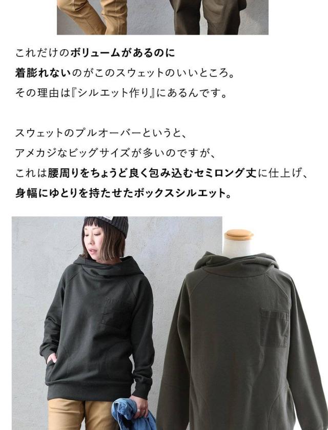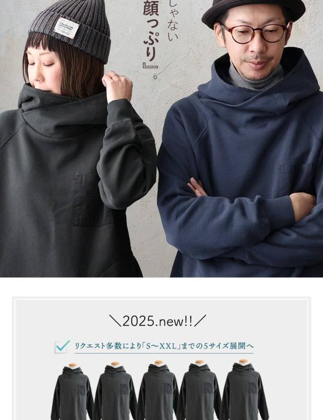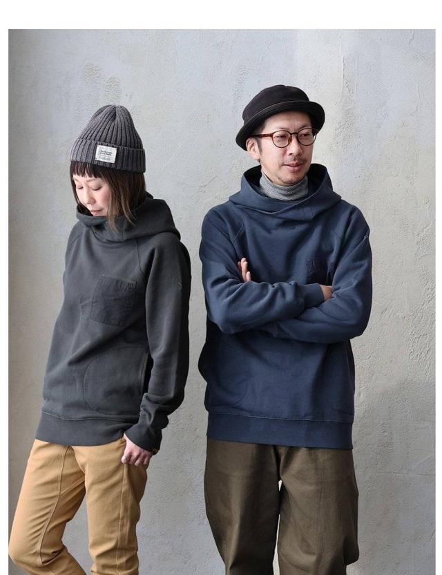 パーカー 長袖 着痩せ 暖かい 秋 冬 裏起毛 USA コットン 綿100 厚手 活性染め しっかり 丈夫 お尻 隠れ カバー メンズ レディース カシュクール ハイネック ラグラン 異素材切替 胸ポケット ゆったり 大人 カジュアル