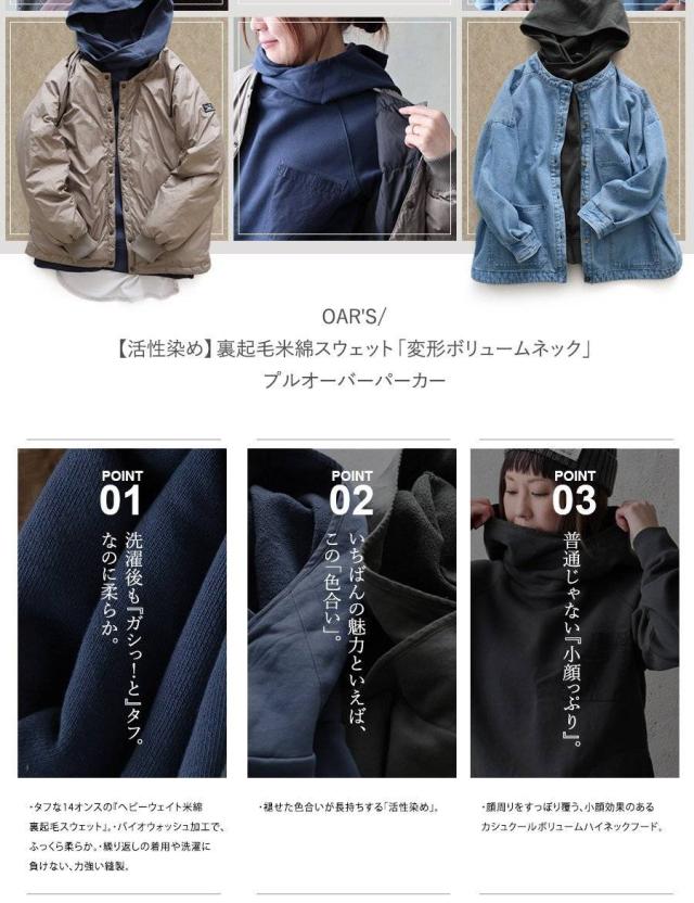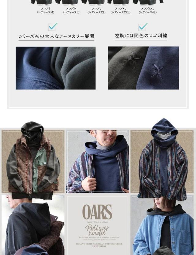 パーカー 長袖 着痩せ 暖かい 秋 冬 裏起毛 USA コットン 綿100 厚手 活性染め しっかり 丈夫 お尻 隠れ カバー メンズ レディース カシュクール ハイネック ラグラン 異素材切替 胸ポケット ゆったり 大人 カジュアル OAR’S オールズ