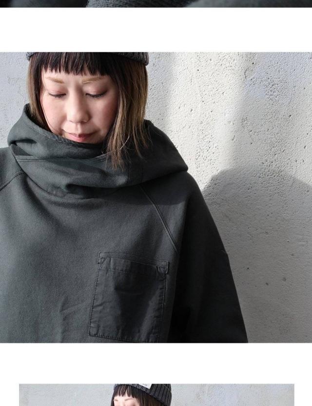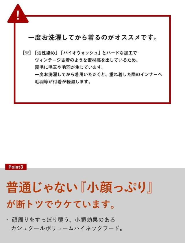 ・顔周りをすっぽり覆う、小顔効果のあるカシュクールボリュームハイネックフード。