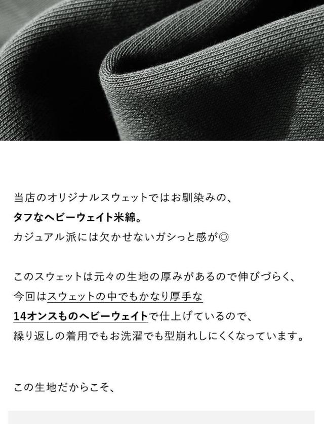 ・タフな14オンスの『ヘビーウェイト米綿裏起毛スウェット』。