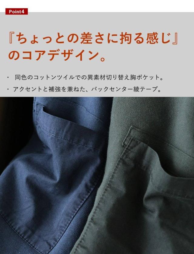 ・同色のコットンツイルでの異素材切り替え胸ポケット。