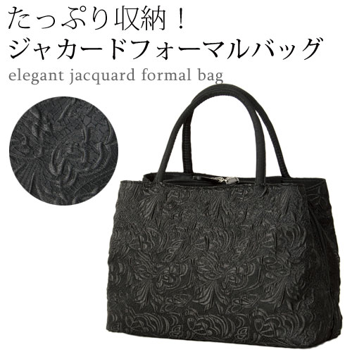 たっぷり収納!ジャカードフォーマルバッグ ハンドバッグ ブラック カバン 鞄 レディース 婦人 ミセス シニア 女性 かばん 大きめ 黒 礼装 収納力 ジャガード シニアファッション 40代 50代 60代 70代 80代 母の日 お母さん おばあちゃん