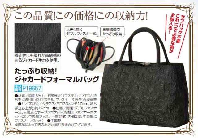 たっぷり収納!ジャカードフォーマルバッグ ハンドバッグ ブラック カバン 鞄 レディース 婦人 ミセス シニア 女性 かばん 大きめ 黒 礼装 収納力 ジャガード シニアファッション 40代 50代 60代 70代 80代 母の日 お母さん おばあちゃん sowa p19657