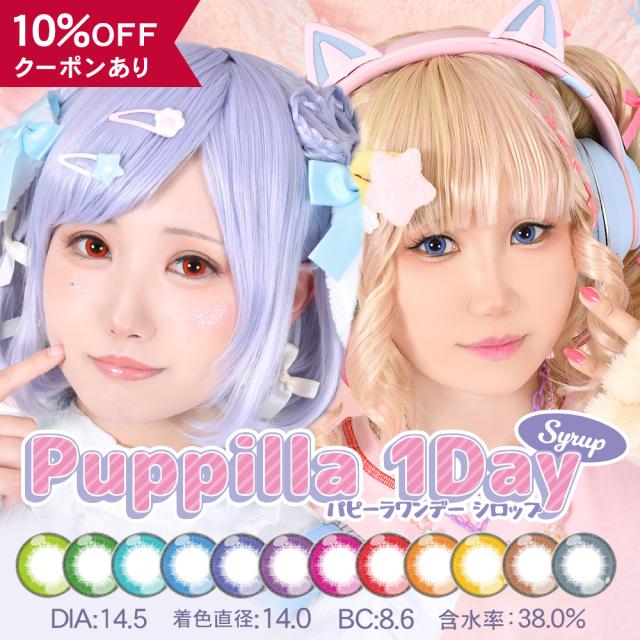 カラコン コスプレ 度あり 度なし 【 1箱6枚入 】 アシストシュシュ パピーラ ワンデー シロップ Puppilla 1day Syrup 14.5mm 安全 カラーコンタクト レイヤー 仮装 ハロウィン ブルー 青 パープル 紫 ピンク グリーン 緑 レッド 赤 イエロー 黄 グレー