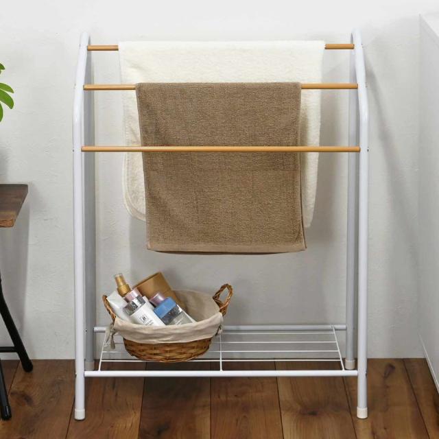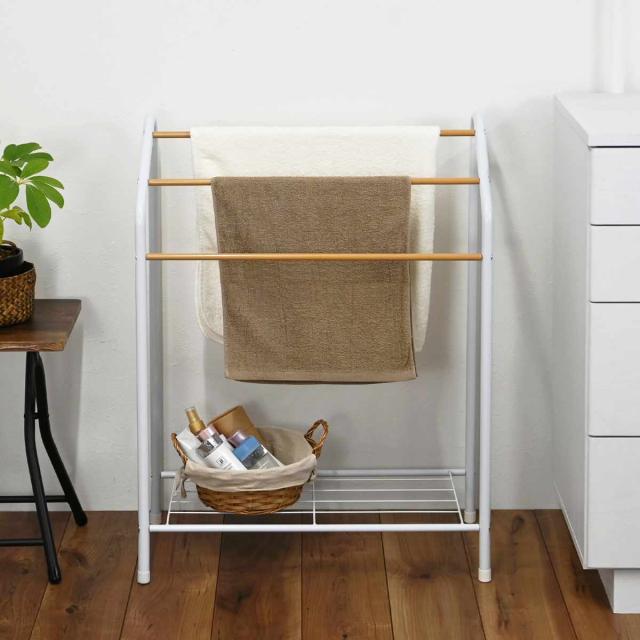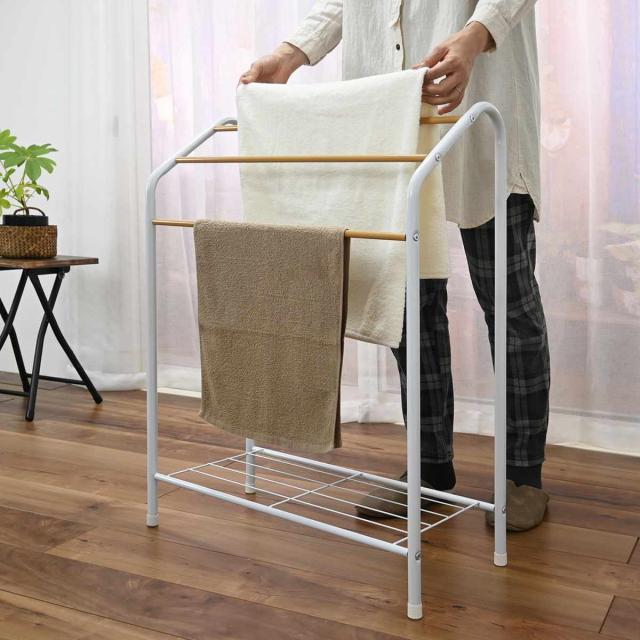 《 LH16672 バスタオルハンガー ランドリーラック ランドリーグッズ 洗濯グッズ インテリア物干し スタイリッシュ おしゃれ オシャレ お洒落 シンプル 出しっぱなし 軽い 持ち運べる 持ち運び 洗濯物 下部 棚付 棚 フェイスタオル たおる タオル 物干しラック 室内物干し 洗面所 脱衣所 リビング 物干しスタンド 部屋干し 少量 ストール マフラー 植物 スプレーボトル 白 白色 ベージュ ナチュラル ナチュラルインテリア 北欧 可愛い カワイイ 人気 便利 》