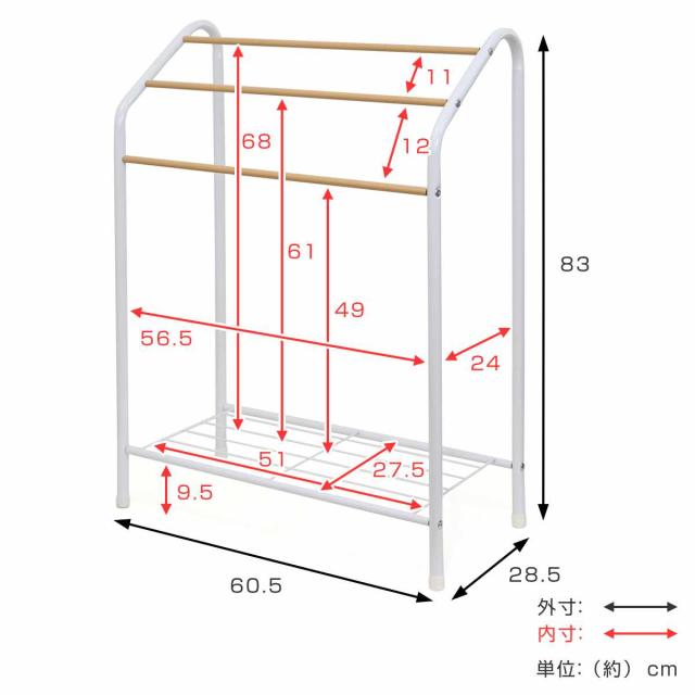 ハンガー タオルハンガー タオルスタンド ( タオル掛け バスタオル スタンド 棚付き 小物置き 軽量 室内干し タオルバー ハンガーラック 物干し 収納 タオル干し ホワイト )