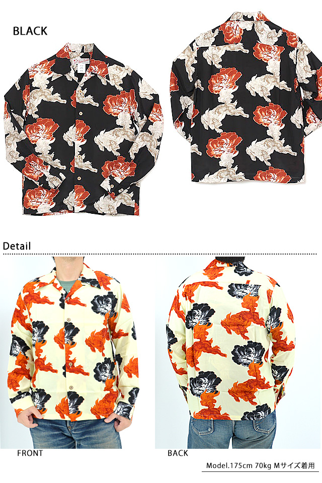 | 獅子と牡丹「SHISHI & BOTAN」レーヨン長袖アロハシャツ◆Hula Keiki HLK-M00092 | ||||||||||||||||||||||||||||||||||||||||
