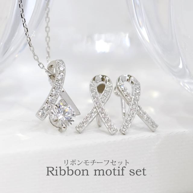 ネックレス ピアス イヤリング 金属アレルギー 対応 K18 18金 プラチナ 仕上 レディース リボン セット 誕生日 プレゼント 彼女 女性 男性 妻 結婚記念日