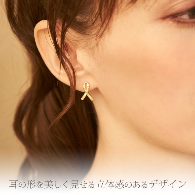 モチーフがふっくらとした曲線を描き、リボンのなめらかさを再現。耳に寄り添うデザインで、エレガントにフィットします。