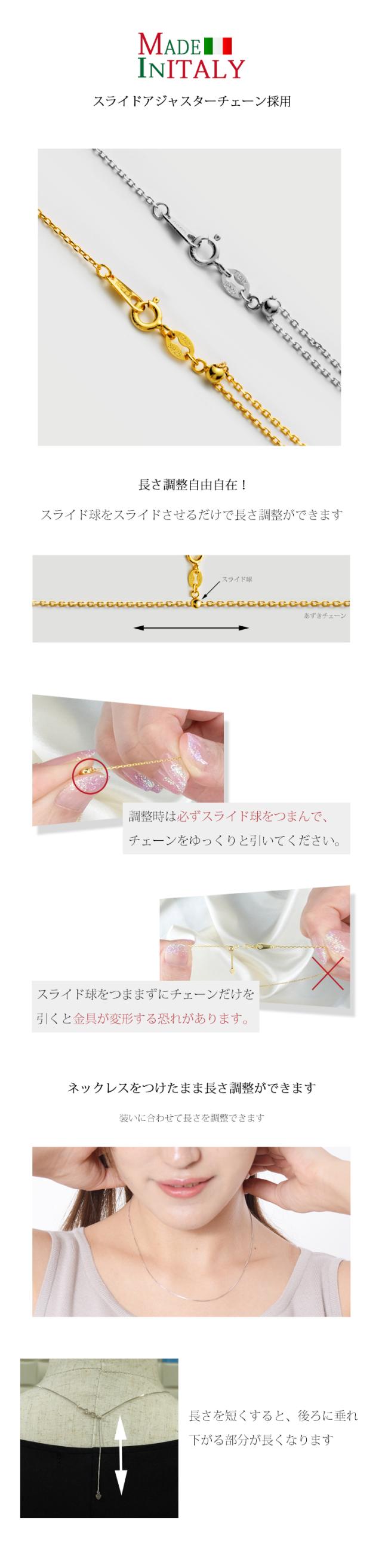 長さ調節が自由自在で、ネックレスをつけたままでも調節可能です。