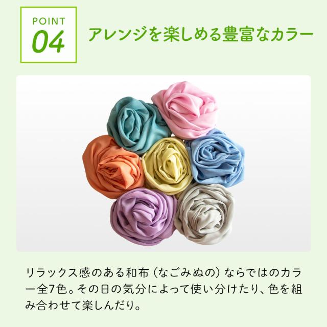 リラックス感のある和布(なごみぬの)ならではのカラー全7色。