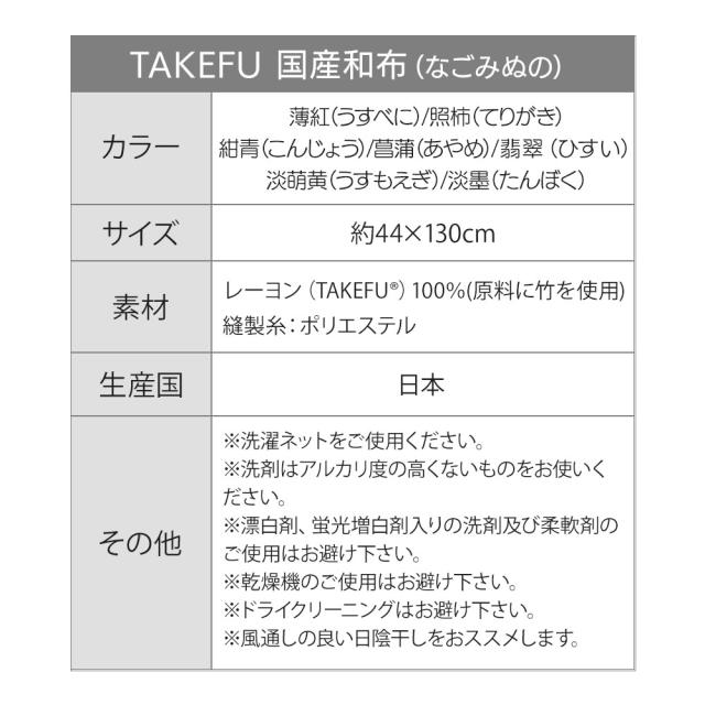 TAKEFU 国産和布(なごみぬの) やさしい肌ざわり ふわっと暖か 敏感肌に アレンジして楽しいカラー ネコポス送料無料