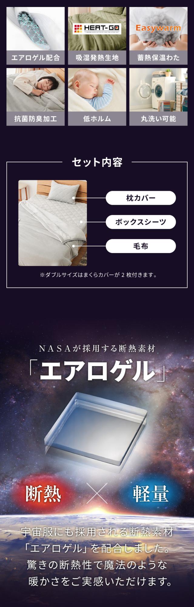 宇宙服素材"エアロゲル"毛布/BOXシーツ/枕カバー(×2) 4点セット ダブル
