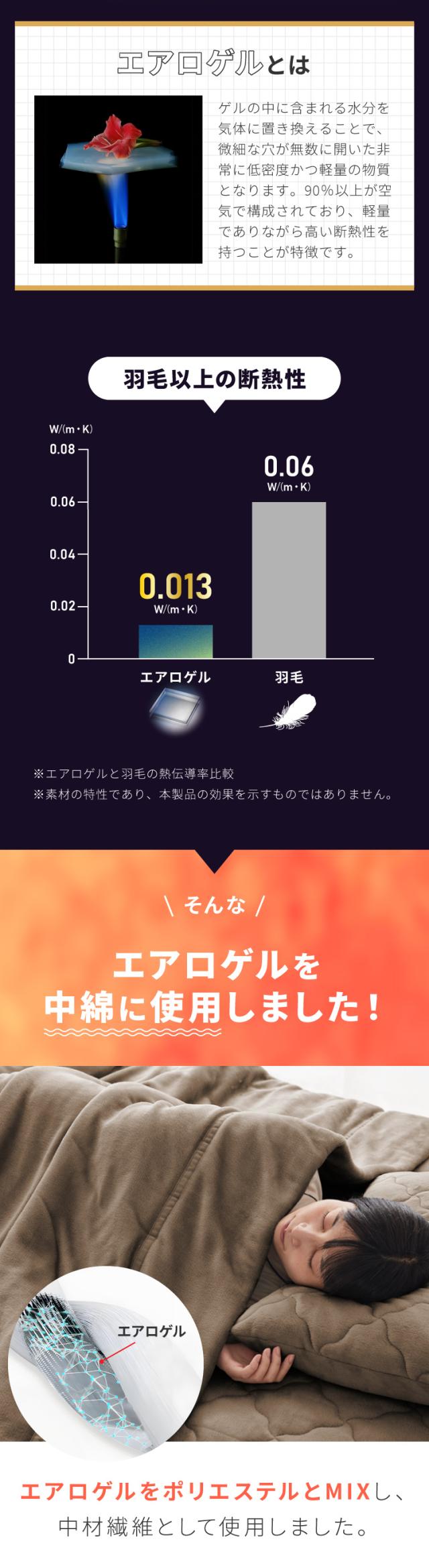 中材にはエアロゲル繊維に加えて蓄熱綿もミックス。