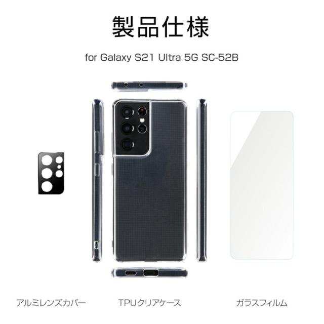 Galaxy S21 ケース 耐衝撃 クリア Galaxy S21 Ultra 5G SC-52B 透明 耐衝撃ケース カバー 衝撃吸収 オープン 背面 画面保護フィルム 超強化ガラス ギャラクシーS21 端末保護 カメラ保護 かっこいい おしゃれ ビジネス