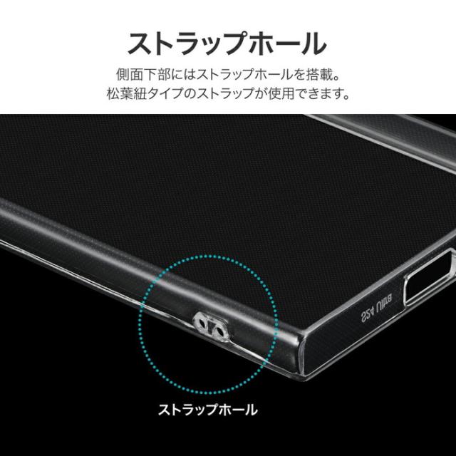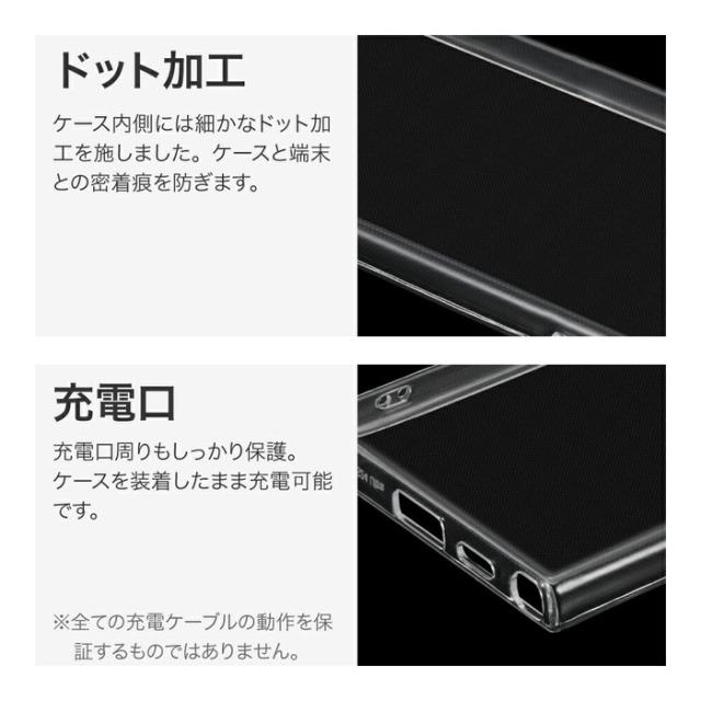 高透明で柔らかなTPUケース/柔軟性があり着脱が簡単/ボタンやカメラレンズを保護する精密設計/マイクロドット加工で端末に張り付きにくい/ストラップホール搭載。