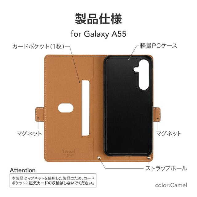 Galaxy A55 5G ケース 手帳型 耐衝撃 スリム 軽量PUレザー ギャラクシー キャメル 手帳型ケース 薄い 軽い カバー カードポケット カード収納 スマホケース スマホカバー シンプル かっこいい おしゃれ ビジネス Twoal W