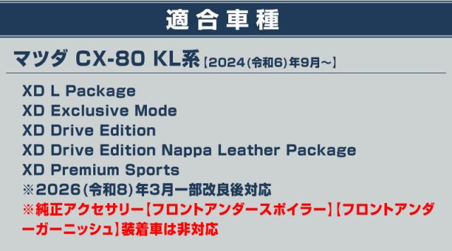 マツダCX-80(ディーゼル車)専用のフロントバンパー上部の樹脂部分に装着するカスタムパーツです。