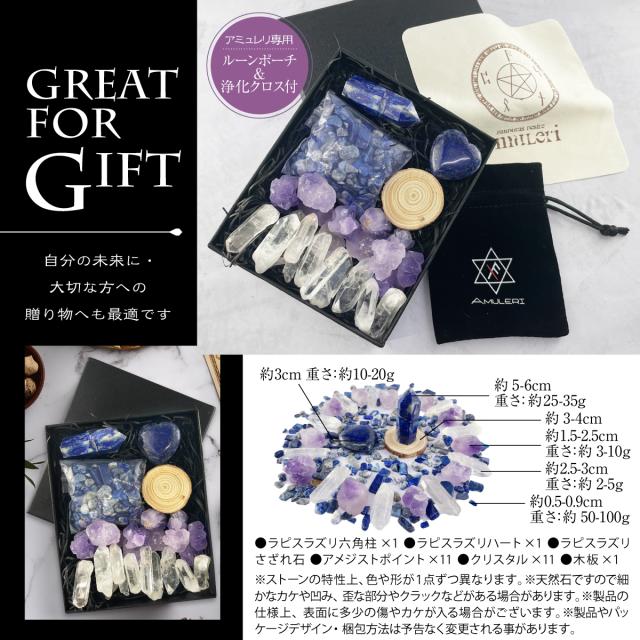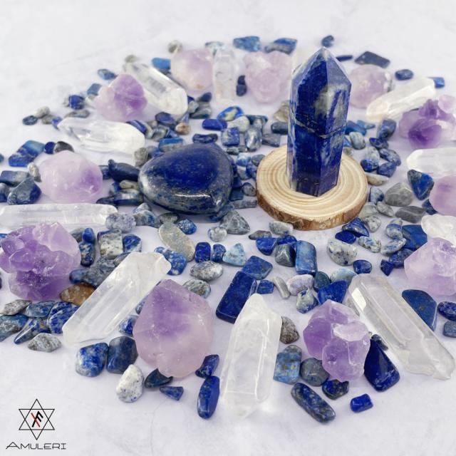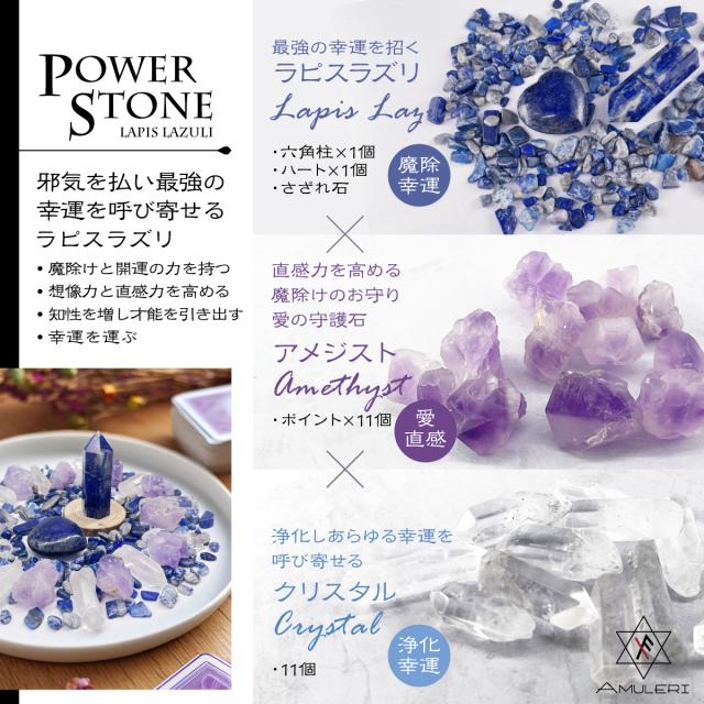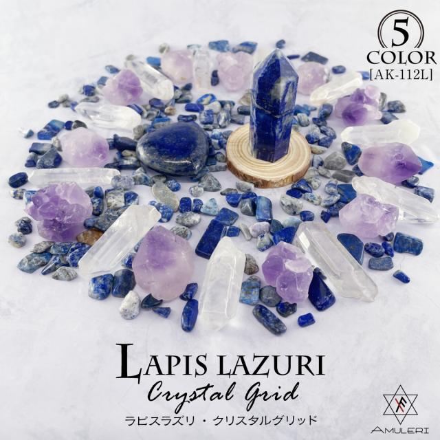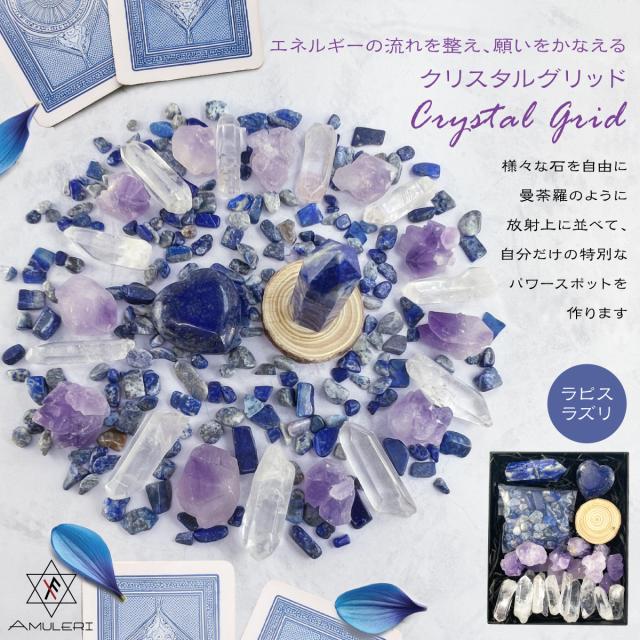 [Amuleri] 天然石 パワーストーンセット クリスタルグリッド ラピスラズリ さざれ石 最強の幸運 直感力 浄化 AK-112L
