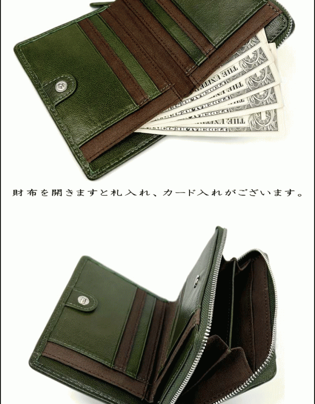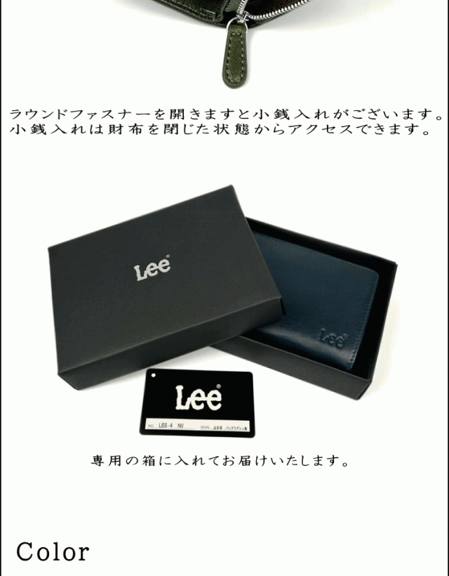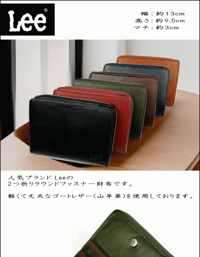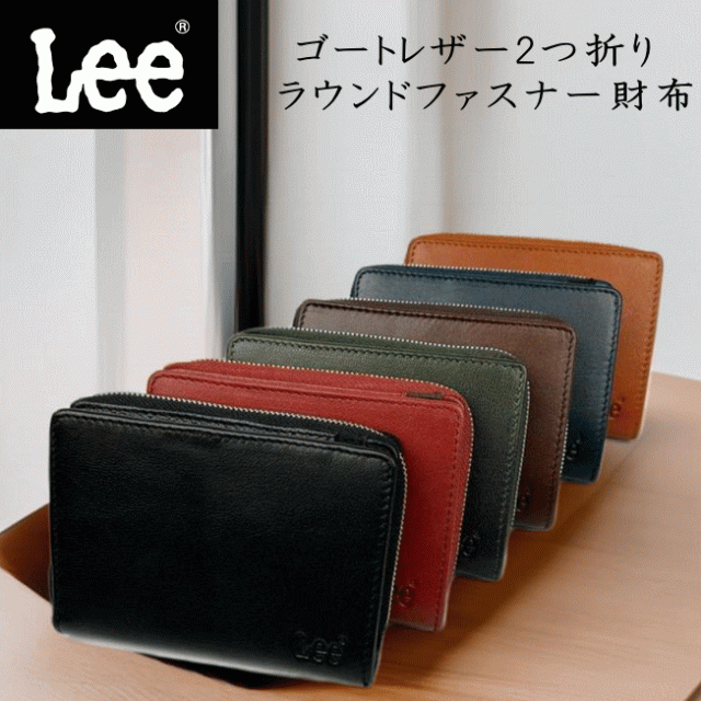 財布 Lee ゴートレザー 山羊革 本革 メンズ ラウンドファスナー 2つ折り財布 二つ折り財布 小銭入れ有り LES-4 キャメル色 グリーン色 チョコ色 ブラック色 レッド色 ネイビー色 財布 メンズ 財布