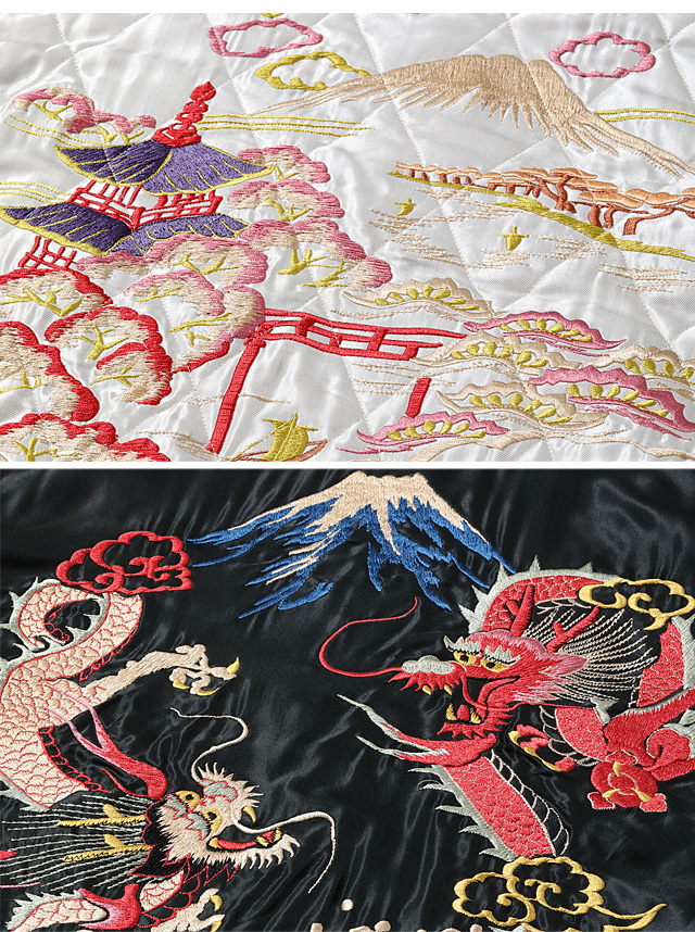 このような風景柄のスカジャンには、浮世絵のような趣があります。