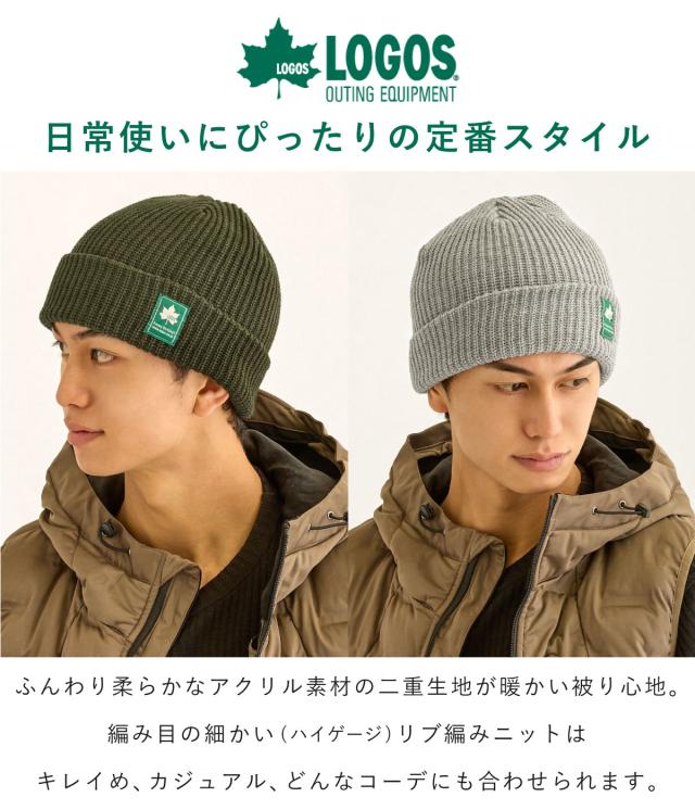 LOGOS ニット帽 ロゴス 締めつけない 帽子 柔らかい アクリル素材 ニットワッチ 秋冬 メンズ レディース 暖かい ワンポイント タグ付き 無地 knit-1718 正規取扱 アウトドア 防寒 リブ ニット お洒落 ビーニー 二重生地 男女兼用 カジュアル プレゼント