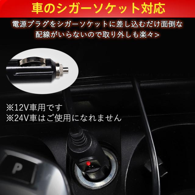 ◇12Vの車専用、車のシガーに差し込むだけのシンプル設計。